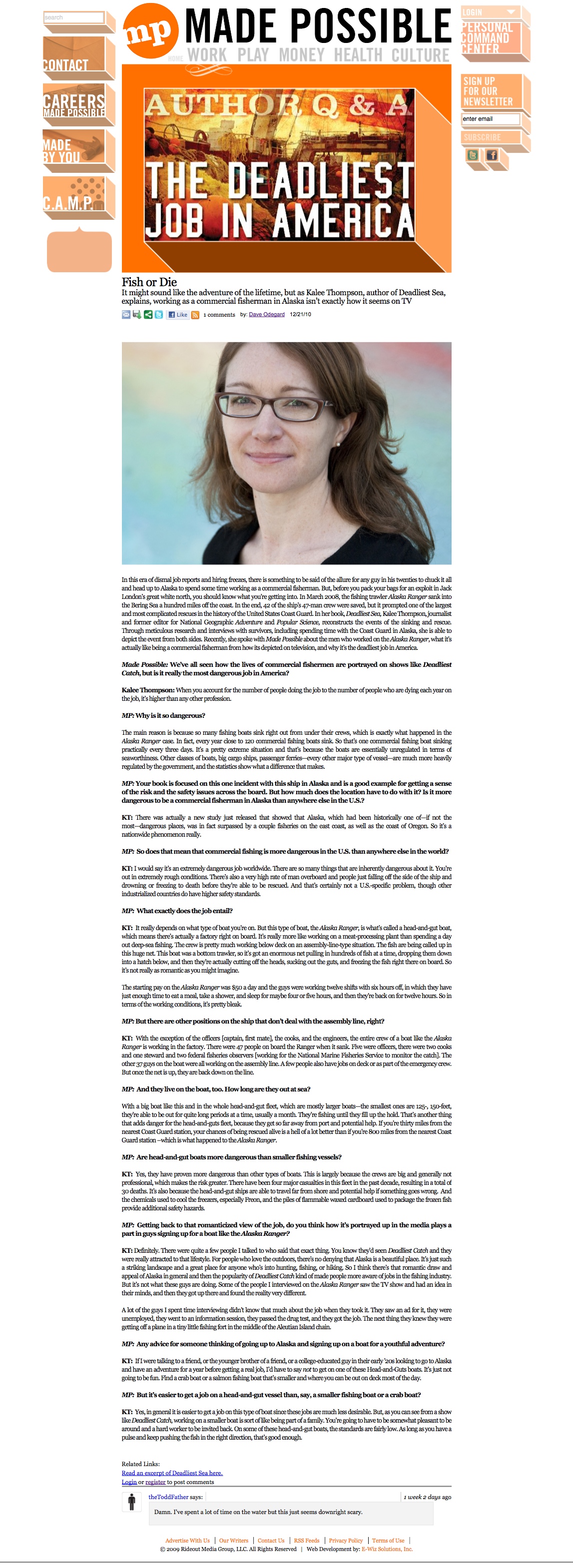 - The Deadliest Job in America: A Q & A with ‘Deadliest Sea’ Author Kalee Thompson