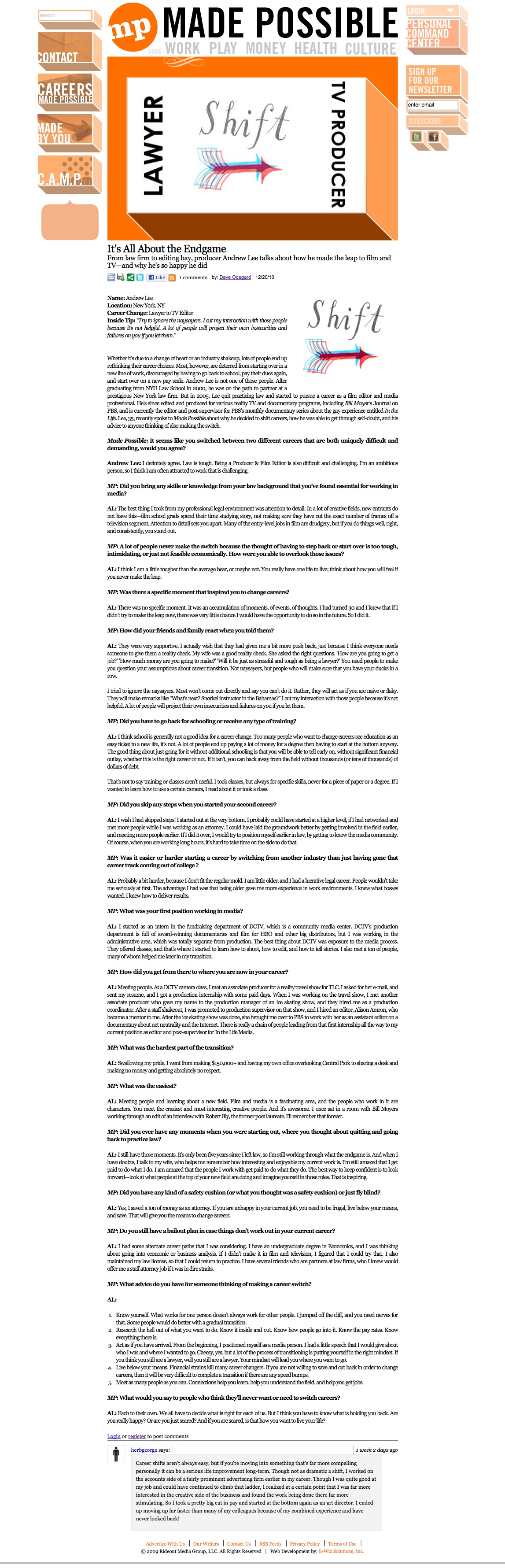- Shift: Lawyer to TV Producer. A Q & A with Andrew Lee
